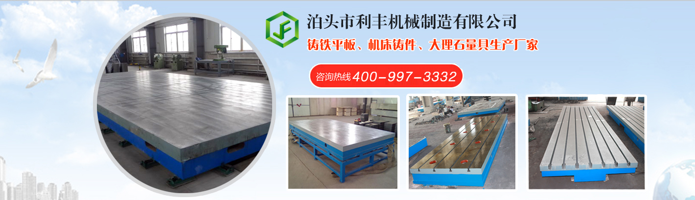 泊頭市利豐機械制造有限公司是生產工具,量具的單位,地處河北省泊頭市。我公司生產的鑄鐵平板、鑄鐵劃線平臺、機床鑄件、大理石量具等量具,具有設計合理、結構穩定、使用壽命長等特點,廣泛用于機械加工、工具車間、裝配車間、機(檢)修車間、計量室及精密加工的檢驗、測量和研究。熱忱歡迎_兄弟廠家朋友前來我公司參觀考察合作,在互惠互利的基礎上,攜手共進,共圖發展。